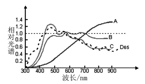 | D65光源 | ??? 到目前為止,還沒有人造光源被推薦為CIE D65 照明體和其他D照明體。現在正在研制的模擬D65的人造光源有:帶濾光片的高壓氙弧燈、帶濾光器的白熾燈、帶濾光器的熒光燈三種。其中,帶濾光片的高壓氙弧燈的模擬最好。 |
